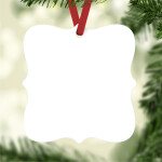 Natural wood round or White Aluminum ornament with red ribbon, perfect for the holiday season.